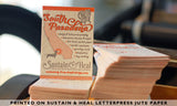 Handmade by fair trade certified artisans in Bangladesh from recycled cotton and jute fiber. Very thick, textured and luxurious. Easy to get a deep “pillow” letterpress impression. Size 18 x 28"