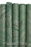 Dark green base sheet with black/gray marbling and metallic silver and gold highlights. Text weight works well for folding, wrapping, envelope liners and much more. For applications needing a thicker 110lb cardstock weight select Cover Stock.