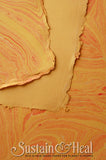 Light orange base sheet. Medium orange with metallic gold, red highlights and slight lime green highlights. Light enough to get good contrast with a dark overprint color. Text weight works well for folding, wrapping, envelope liners and much more. For applications needing a thicker 110lb cardstock weight select Cover Stock.