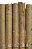 Tan base sheet. Brown with metallic gold, blue, red and mustard yellow highlights. Usually light enough (some darker areas) to get good contrast with a dark overprint. Text weight works well for folding, wrapping, envelope liners and much more. For applications needing a thicker 110lb cardstock weight select Cover Stock.