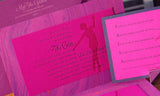 Two color letterpress on fair trade Sustain & Heal paper. Average cost for 100 invitations, Envelopes, RSVP and Celebration cards. $1,200. Digital guest addressing $1 per address.